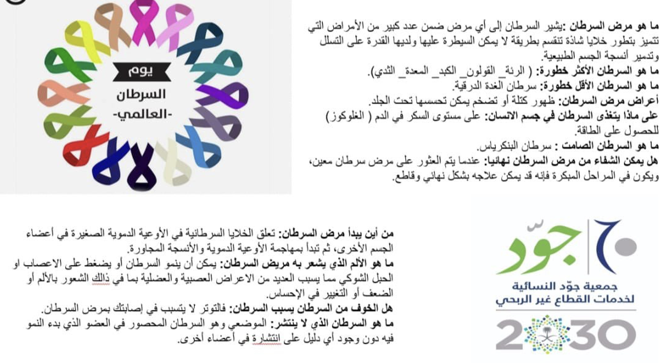 شاركت جمعية جوّد في اليوم العالمي لمكافحة السرطان بتغريدة على حساب الجمعية في تويتر